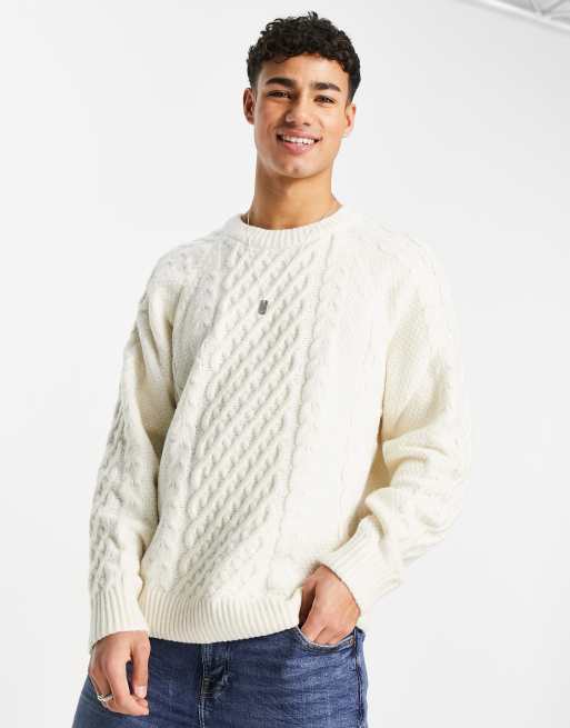 Abercrombie & Fitch aran cable knit crew neck sweater in cream ASOS