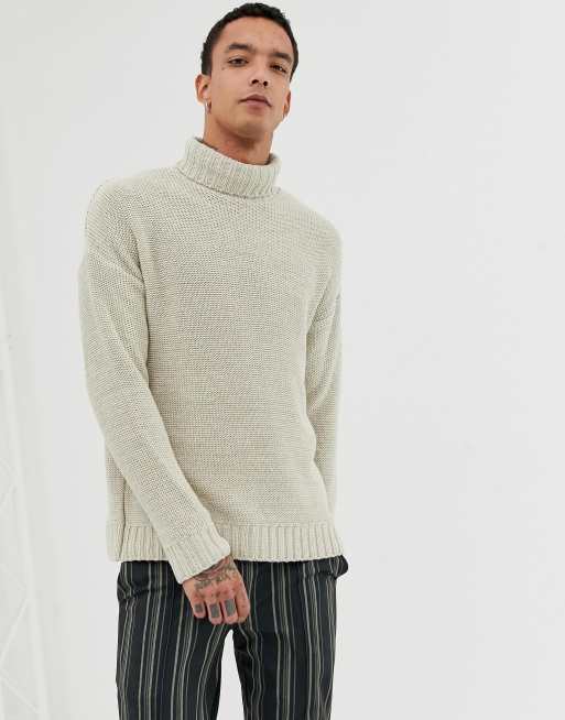 ASOS DESIGN knitted oversized roll neck jumper in beige ASOS