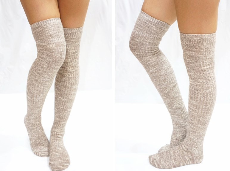 Beige Knit Knee High Socks Boot Socks on Luulla