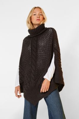 Esprit Chunky knit poncho with a cable pattern at our Online Shop