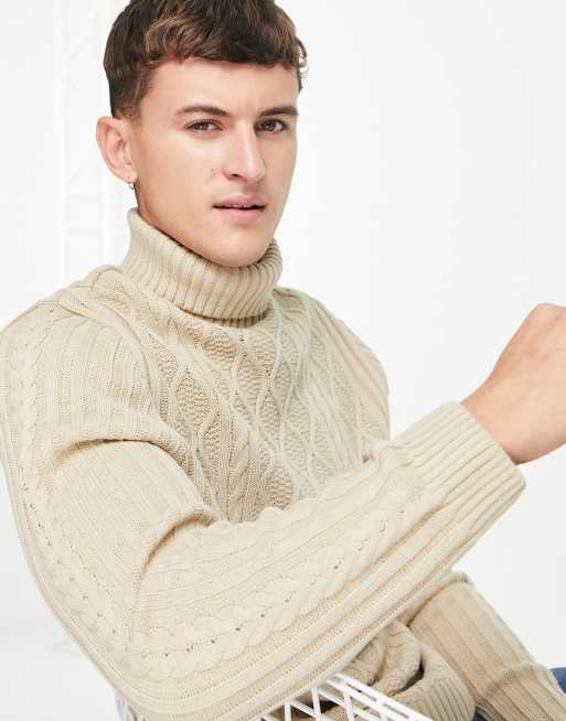 ASOS DESIGN cable knit roll neck sweater in beige ASOS