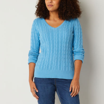 St. John's Bay Tall Womens V Neck Long Sleeve Cable Knit Pullover