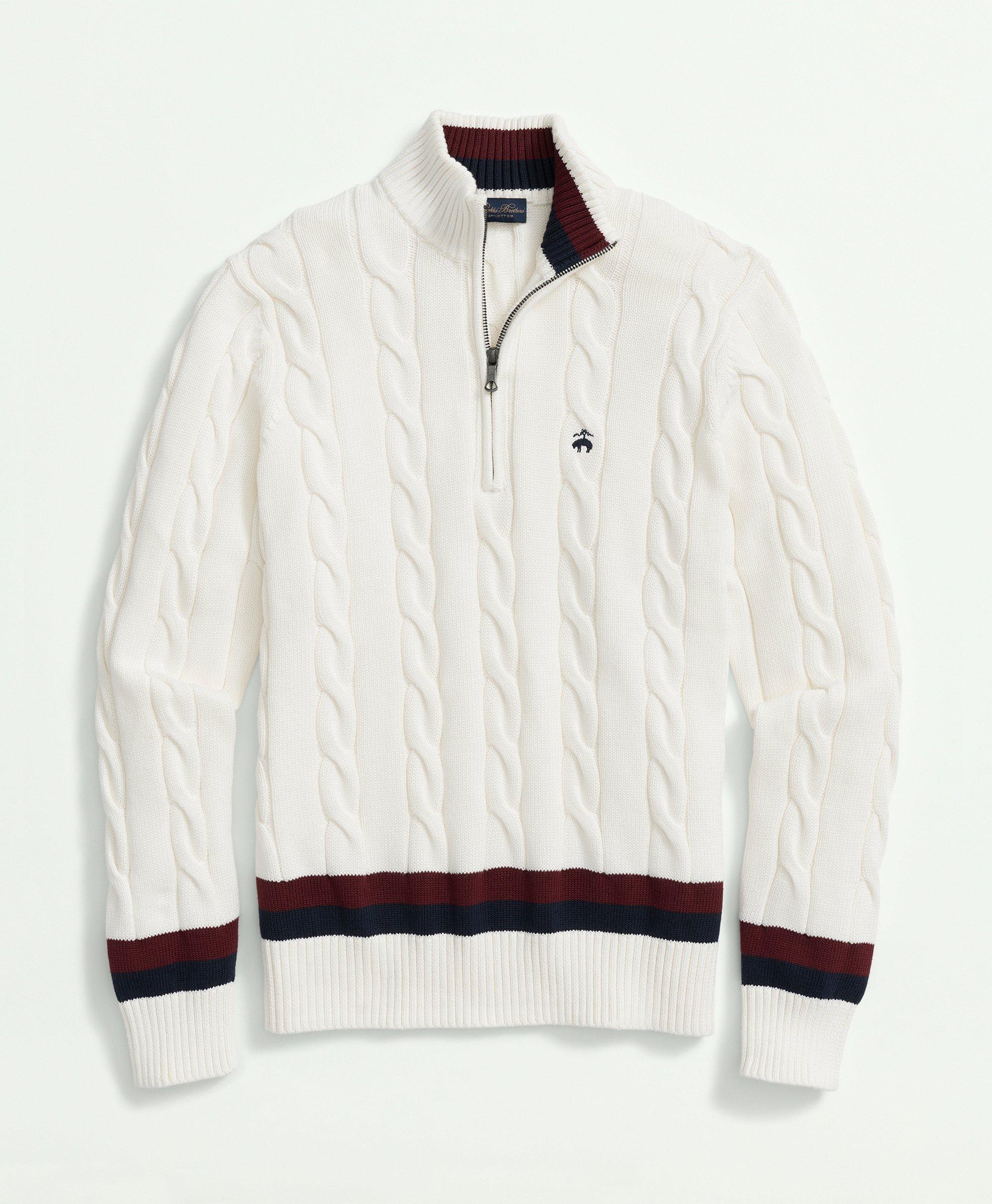 Cable Knit Tennis HalfZip Sweater in Supima® Cotton