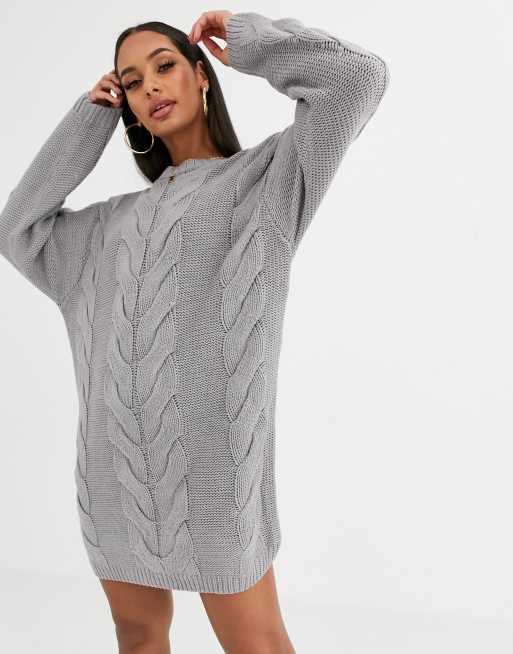 Grey All Over Cable Knit Jumper Dress PrettyLittleThing CA