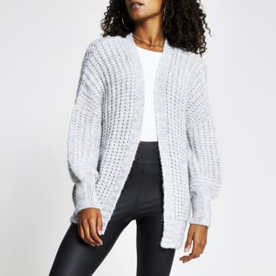 Grey Fluffy Knit Oversized Cardigan PrettyLittleThing IRE