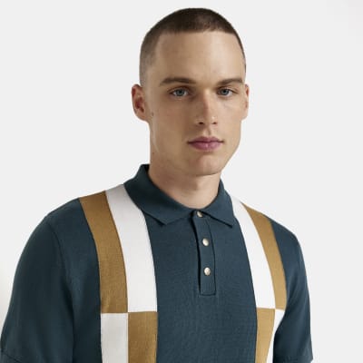 Green Slim fit colour Block knit Polo shirt River Island