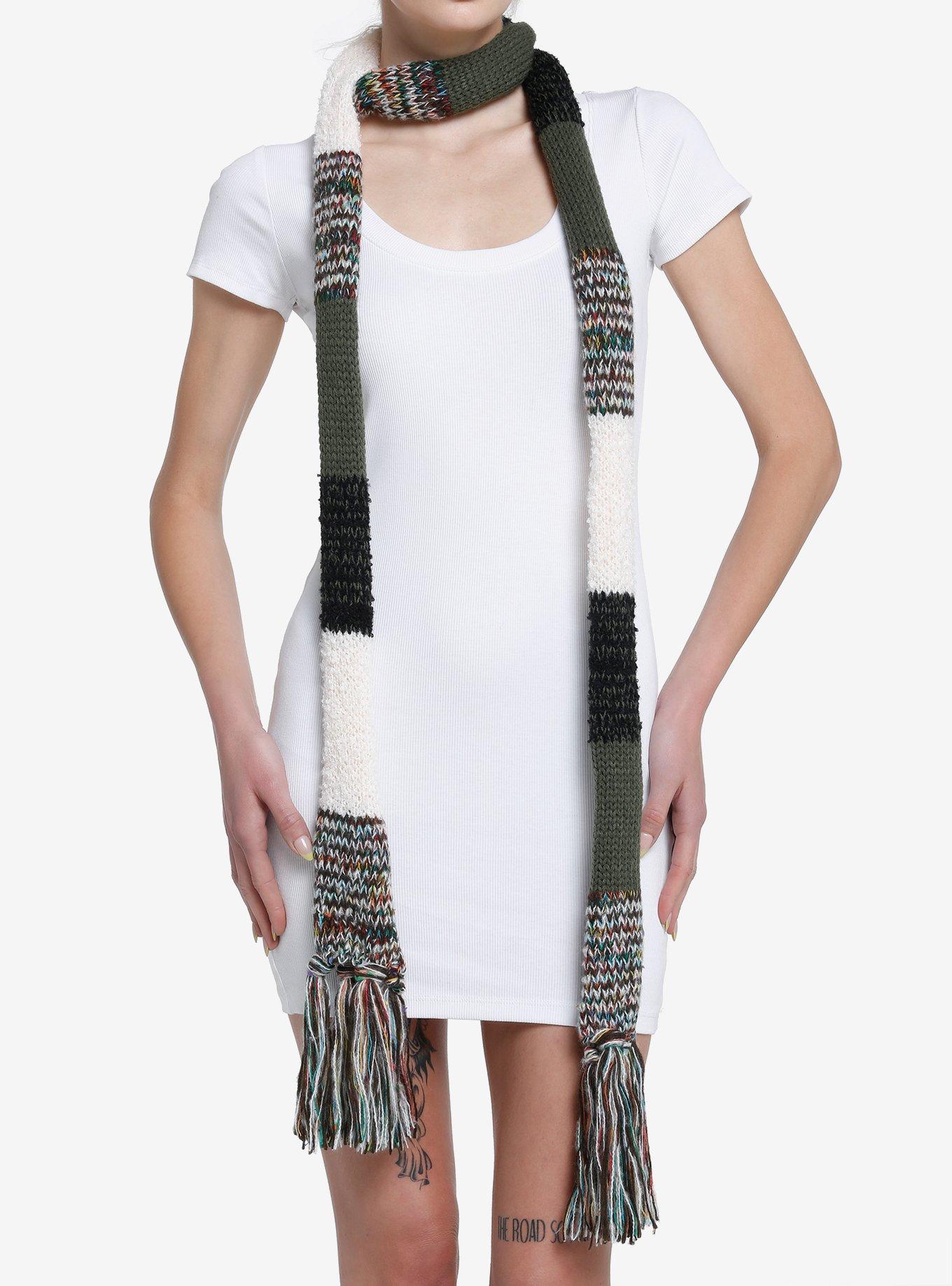 Colorful Patchwork Knit Skinny Scarf Hot Topic