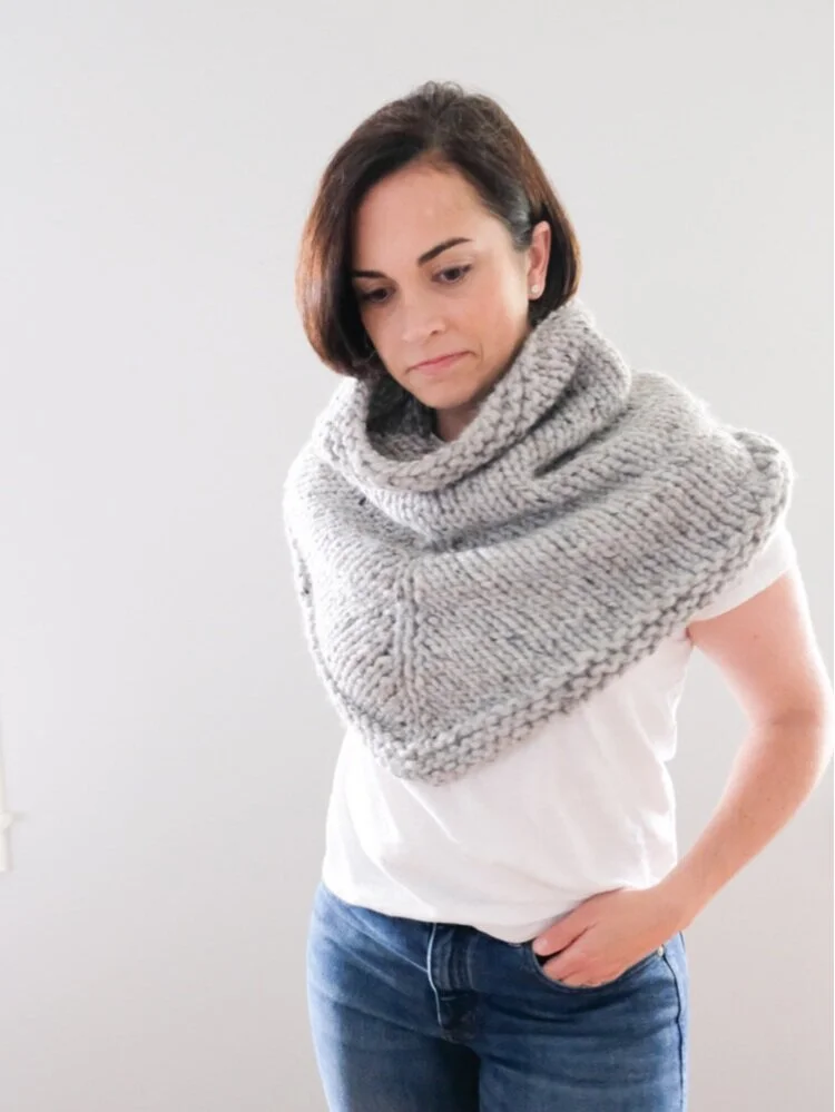 Simple Knitted Bandana Cowl [FREE Knitting Pattern]