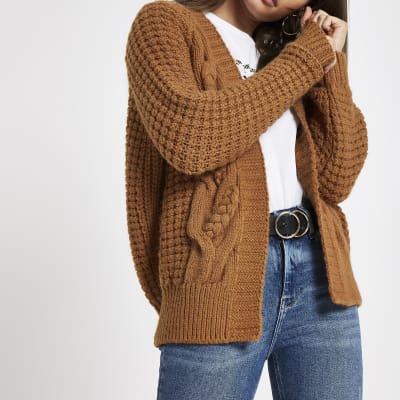 Brown cable knit cardigan River Island