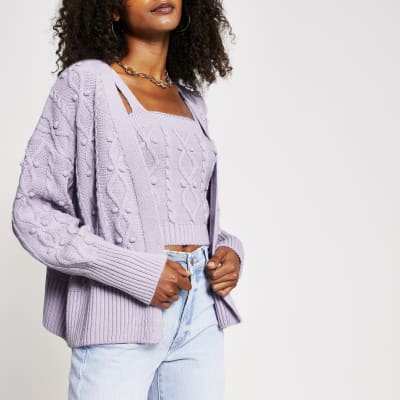 Light purple knit cardigan and bralet set River Island