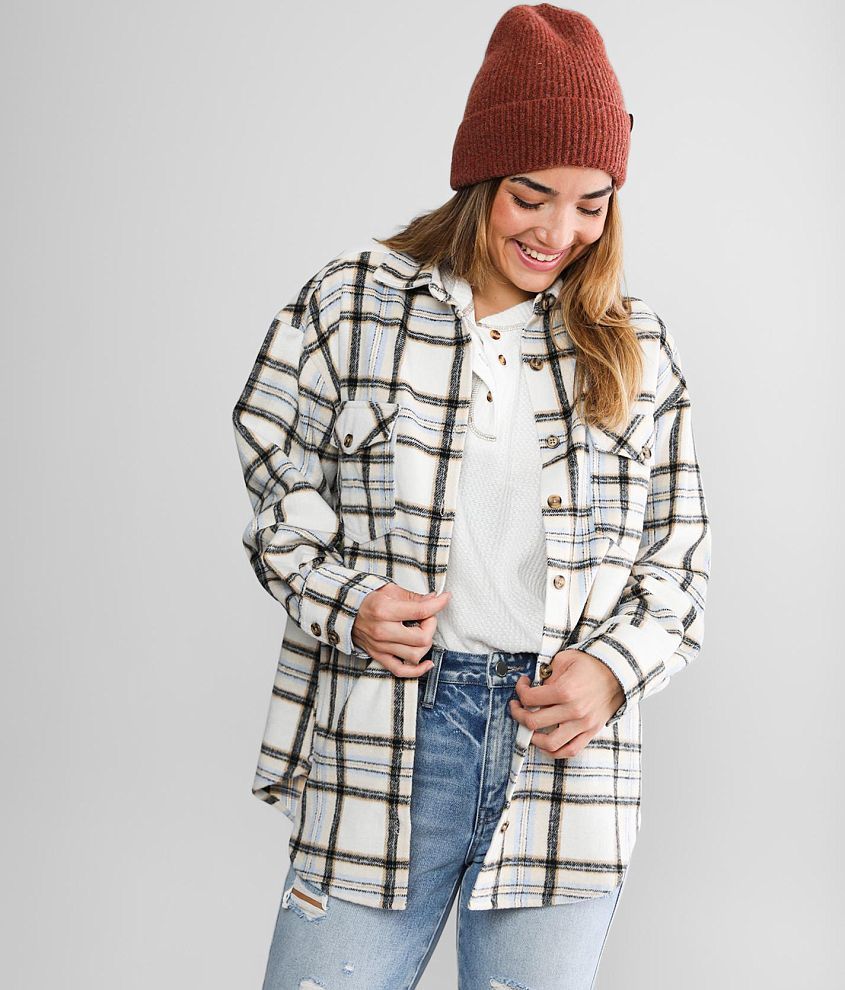 BKE Brushed Knit Flannel Shirt Women's Shirts/Blouses in White Blue