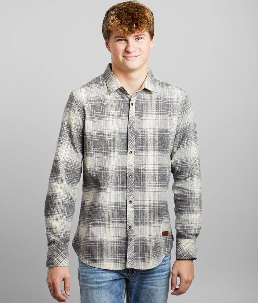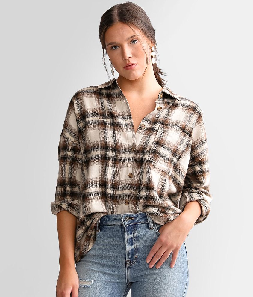 BKE Brushed Knit Flannel Shirt Women's Shirts/Blouses in Black Tan