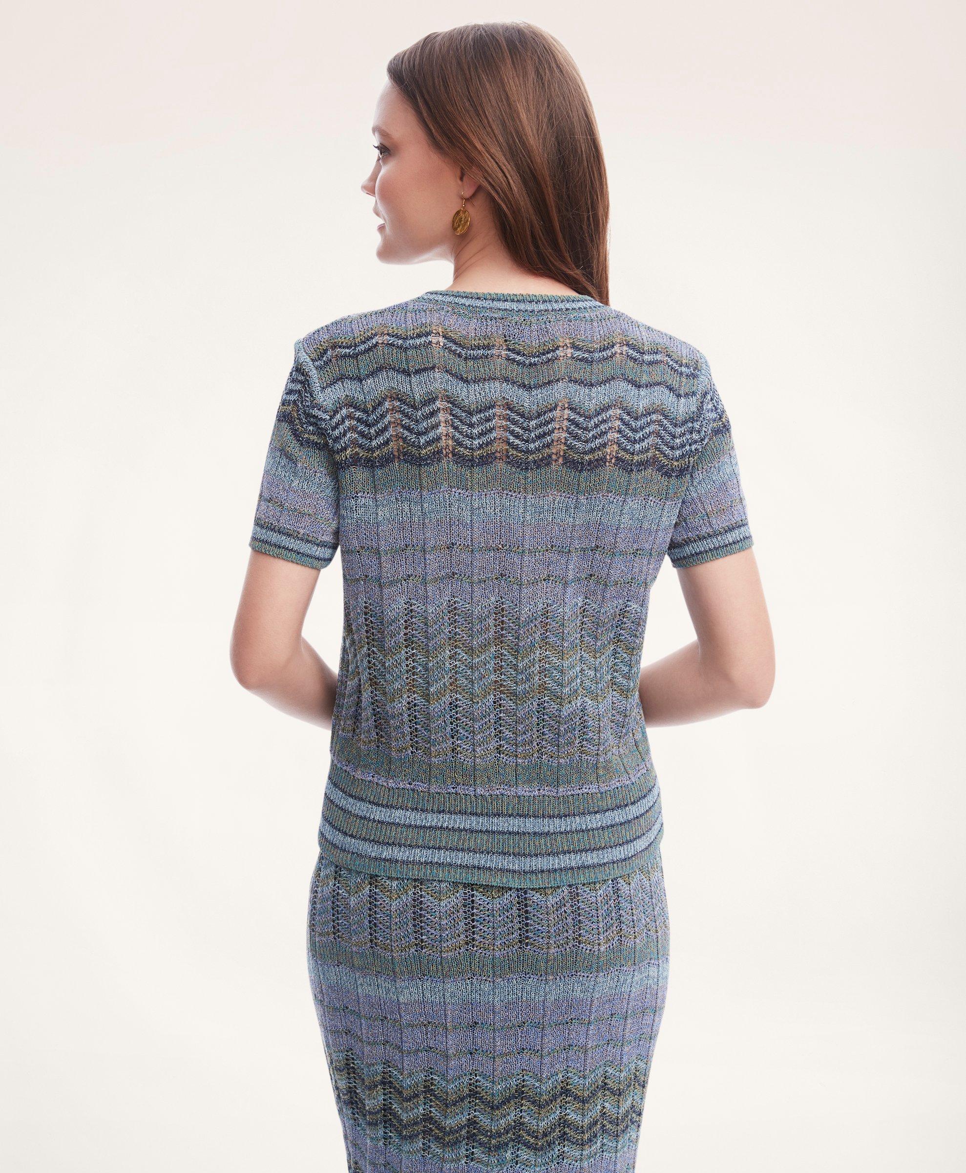 Cotton Blend Knit Short Sleeve Sweater