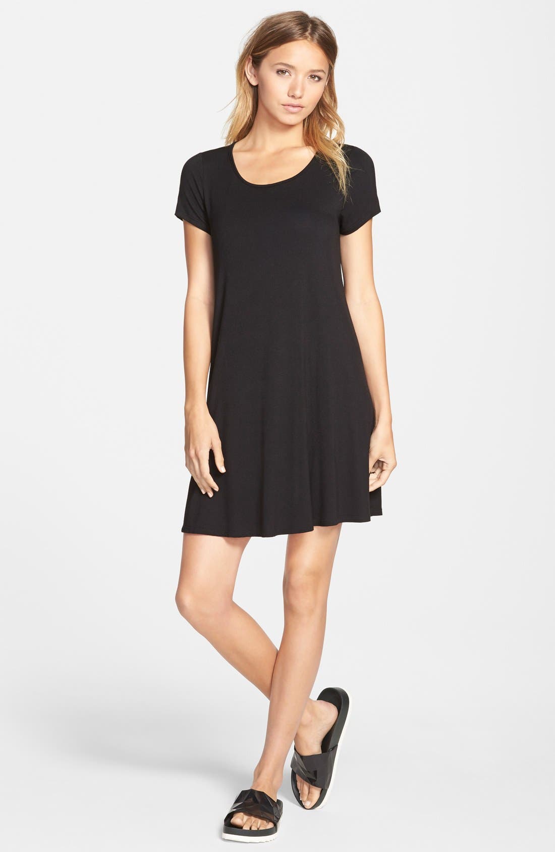 Princess style swing dress with a round neckline and cap sleeves. Designed for a relaxed swing silhouette. Price and other details may vary based on product size and color. Skip to the beginning of the images gallery.