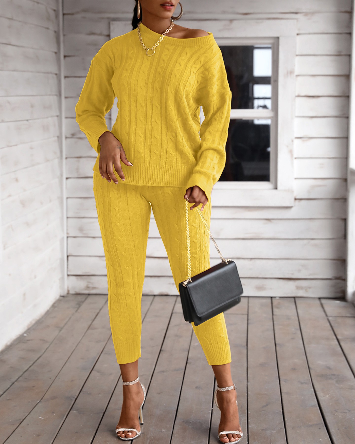 Solid Ribbed Knitting Casual Sweater & Pants Sets Online. Discover