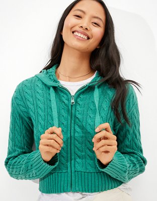 AE Cropped Cable Knit ZipUp Sweater