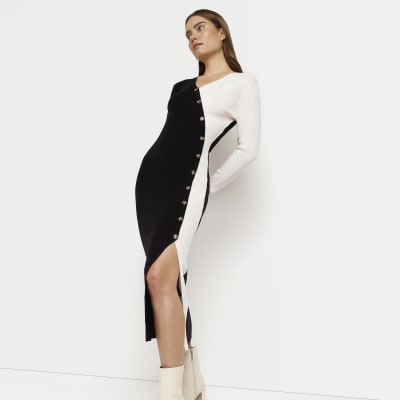Black knit bodycon midi dress River Island