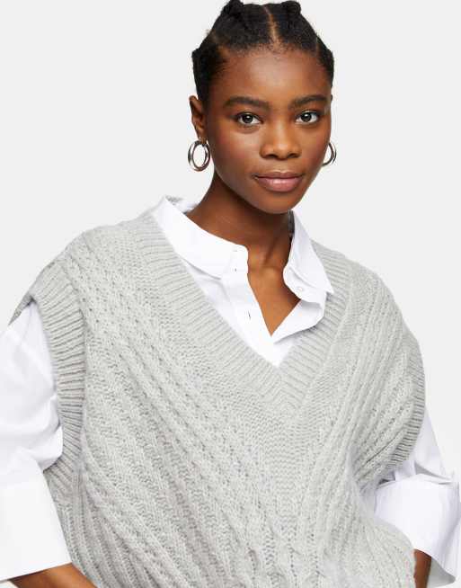 grey longline cable knit vest ASOS