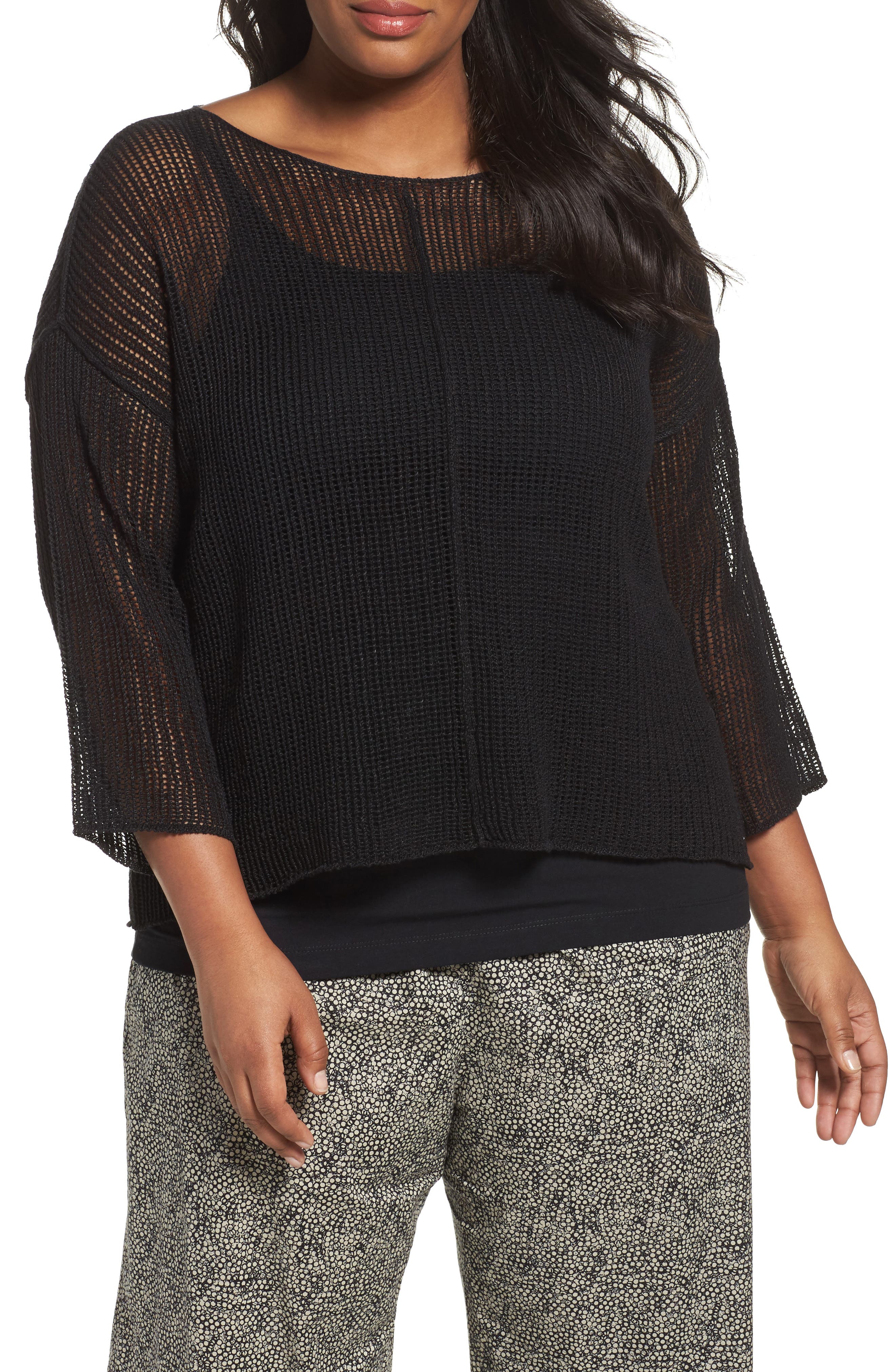Eileen Fisher Organic Linen Mesh Knit Top (Plus Size) Nordstrom
