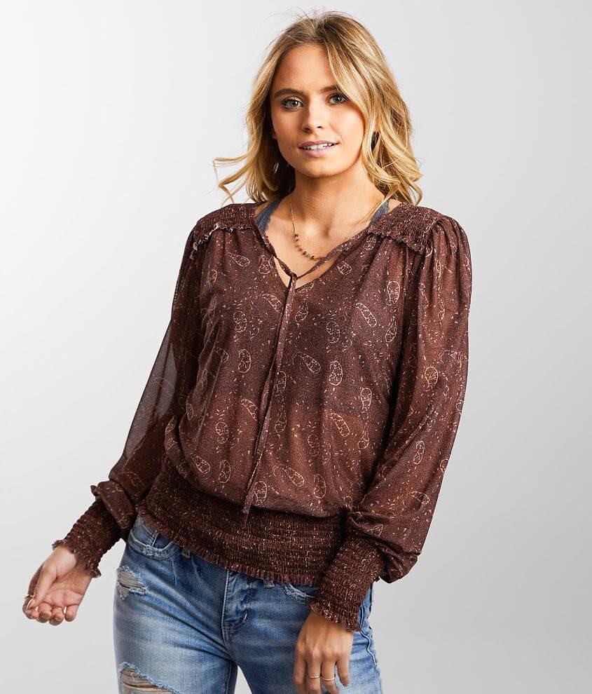 Daytrip Mesh Knit Floral Paisley Print Top Women's Shirts/Blouses in