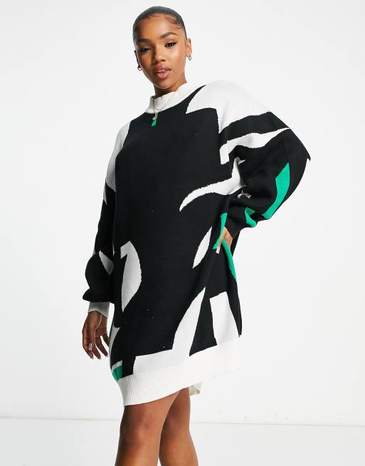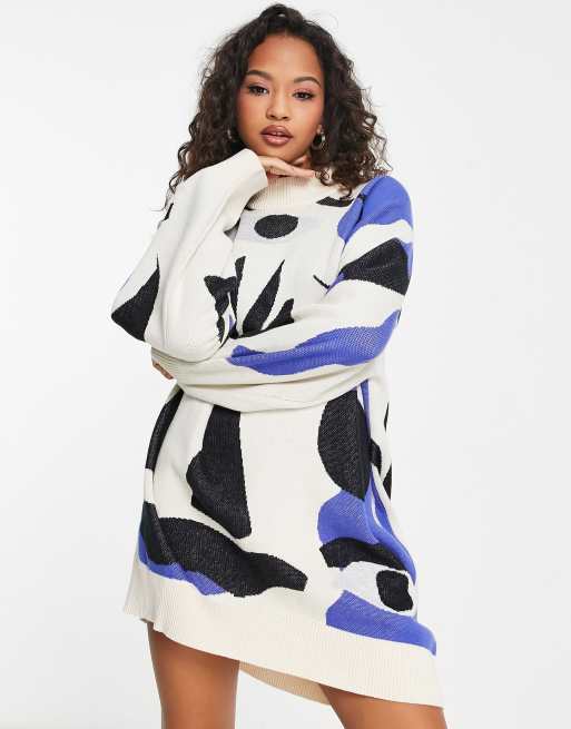 Monki Jacquard Knit Sweater Dress In Abstract Shapes