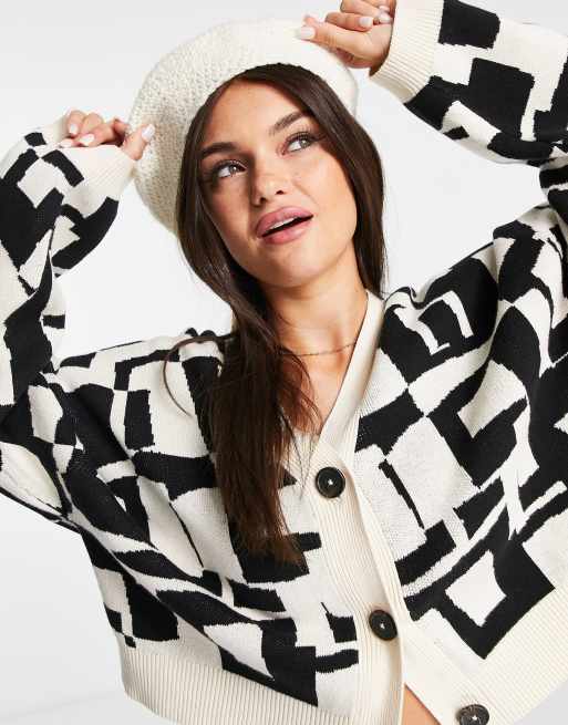 Monki oversized boxy cardigan in monochrome abstract knit ASOS