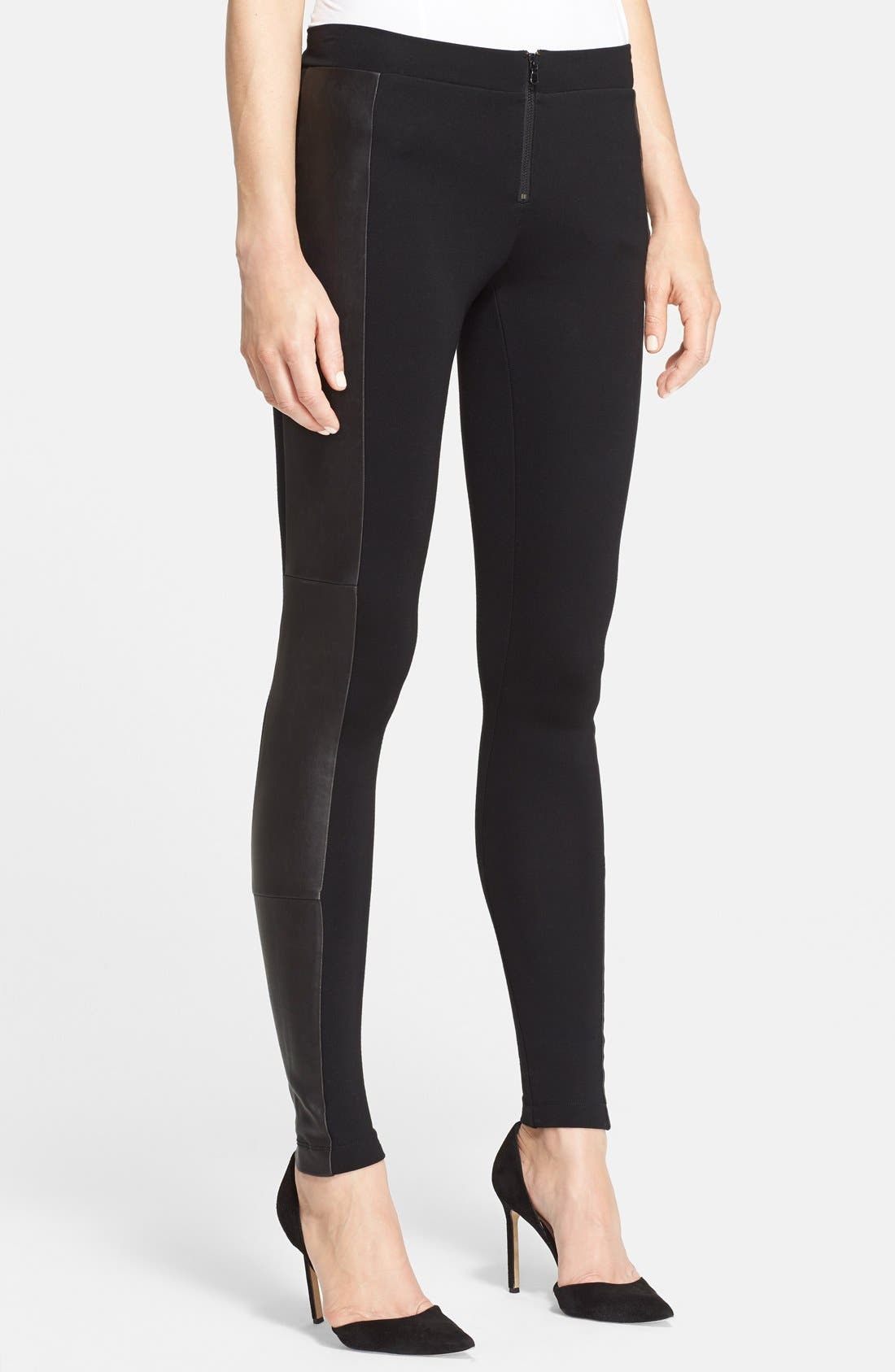 Alice + Olivia Leather Trim Ponte Knit Leggings Nordstrom