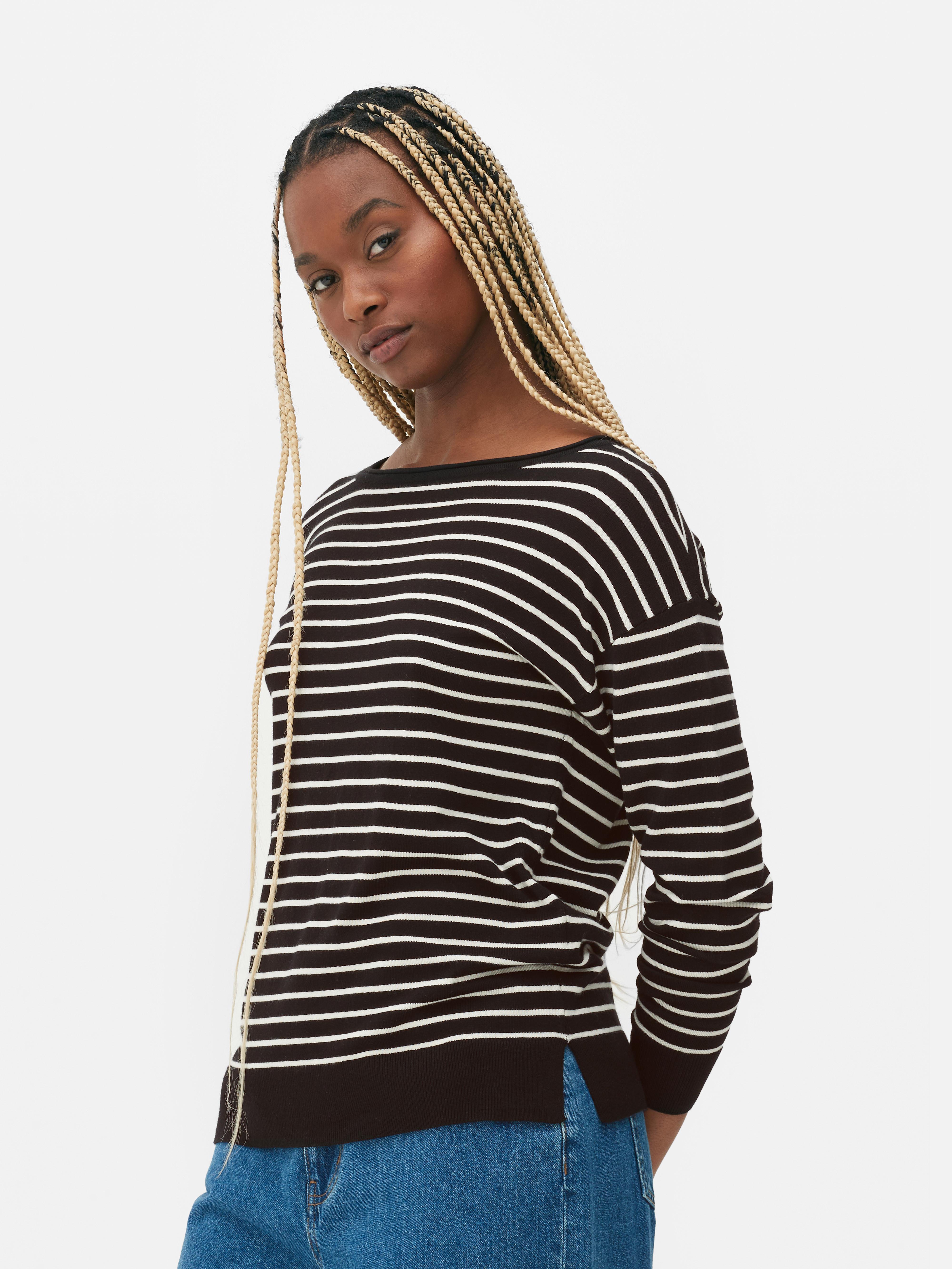 Women's Black/White Stripe Boat Neck Fine Knit jumper Primark