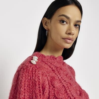 Red cable knit jumper River Island