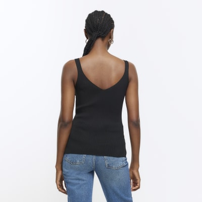 Black Ribbed Knitted Vest River Island