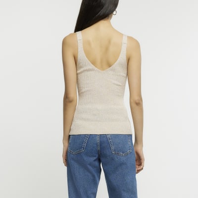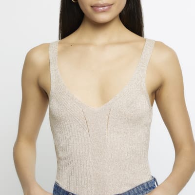 Gold ribbed knitted vest River Island