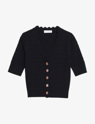 SANDRO Scallopedtrim knitted cardigan