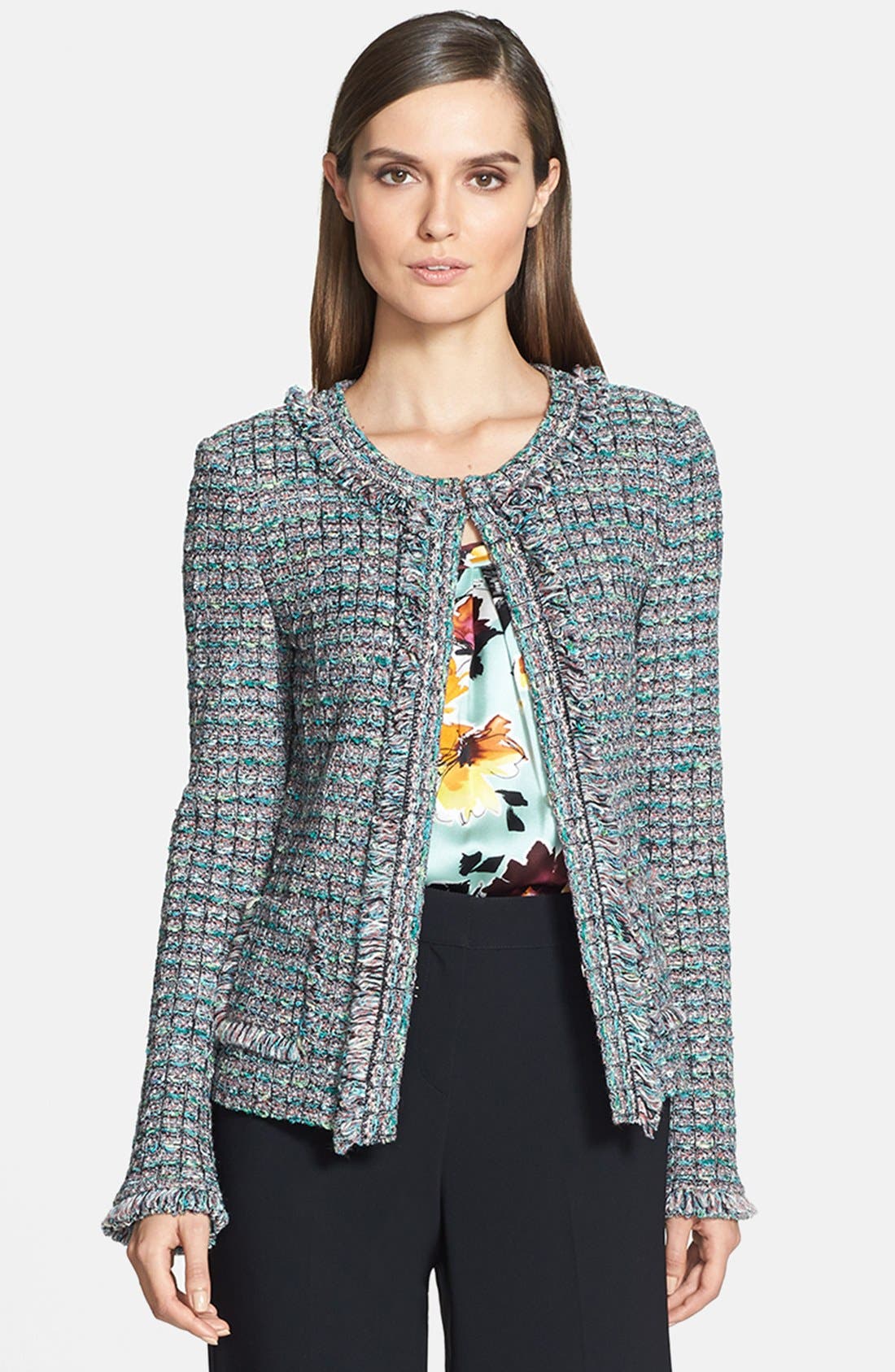 St. John Collection Fringe Trim Donegal Tweed Knit Jacket Nordstrom