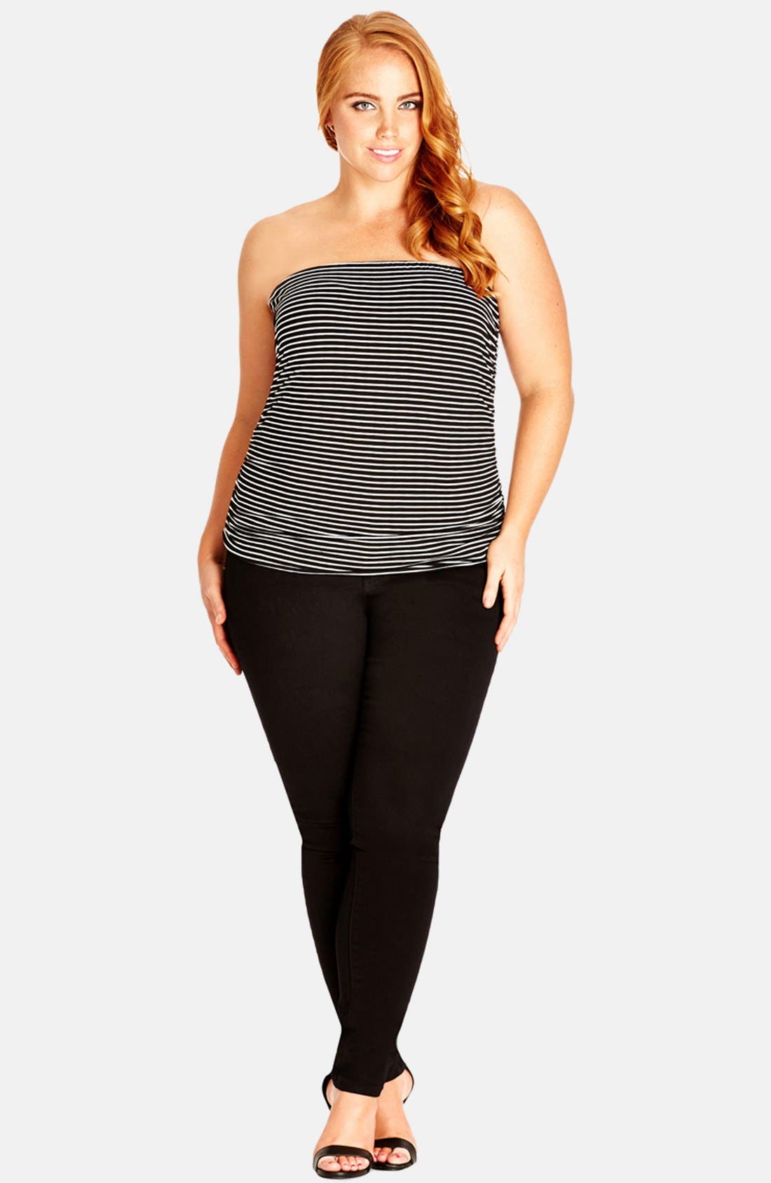 City Chic Stripe Ruched Strapless Knit Top (Plus Size) Nordstrom