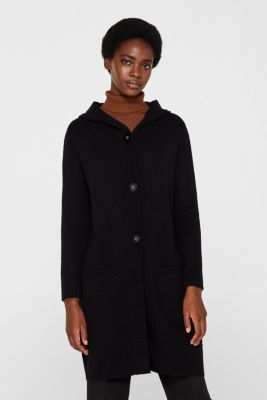 Esprit Hooded coat in a textured knit, made with wool at our Online Shop