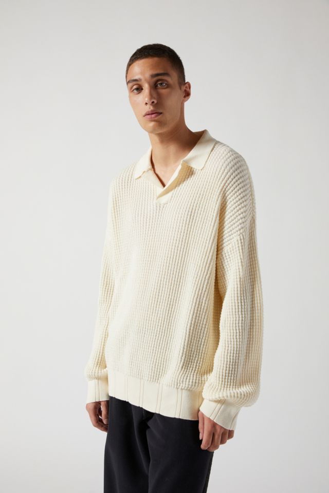 Standard Cloth Ecru Waffle Knit Polo Sweater Urban Outfitters UK