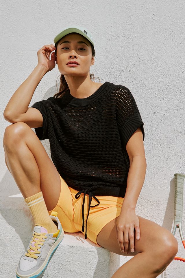 Web cut in our breathable open knit fabric, with ribbed short sleeves and drawstring for a cropped fit, the corvallis is a stylish piece perfect.