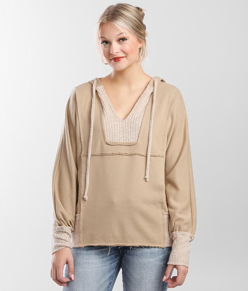 BKE Pieced Waffle Knit Hoodie Women's Sweatshirts in Taupe Buckle