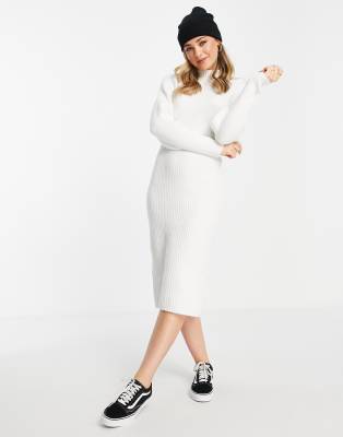 Monki Knit Midi Dress In Off White Cream ModeSens